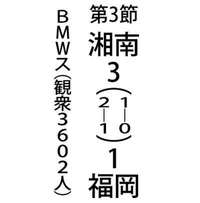 後半も疲れを見せることなく走り続けた湘南は63分、岩上がハングギョンから受けたショートパスを左足で振りぬき、3戦連発となるゴールを決める。退場で1人少ない福岡も意地を見せて84分に1点を返すと、おせおせムードに。肝を冷やす場面もあったが、ロスタイム、”平塚魂”こと馬場がダメ押しゴールを決めて勝負あり。3連勝を飾った。