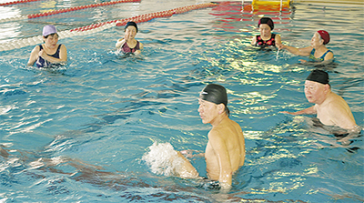 平塚市の転倒骨折予防事業や介護予防事業などの委託先にもなっている同スクール。日ごろから健康志向の高い中高年の要望に応え、同スクールでも独自の『アクアクリニック体操』をスタートさせ、人気を博している。
