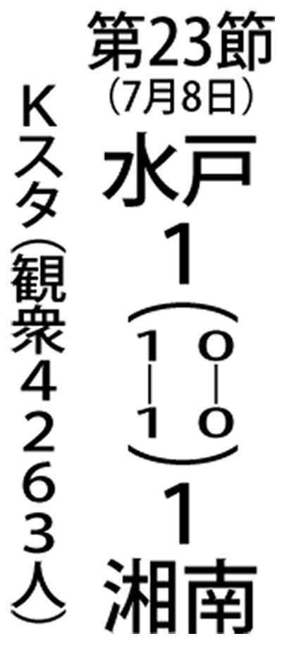 高い集中力を保つ水戸の守備陣をなかなか崩すことができず、シュートは放つもののチャンスらしいチャンスを作ることができない。一方、水戸は少ないパス本数で一気に湘南のゴールに迫る攻撃を展開。62分には敵ながら見事な素早いカウンター攻撃により先制点を奪われてしまう。