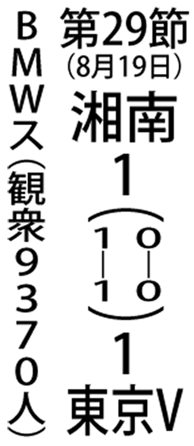 勝ち点で並ぶチーム同士の一戦。これまでの総得点もリーグ1、2位の対決に熾烈な打ち合いも予想されたが、意外にも前半のシュートは湘南が3本、東京Vは0本。とはいえ両チームともに一歩も譲れない気持ちが表れ、緊張感がスタジアムに漂う。