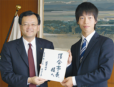 落合市長は「囲碁まつり(7日)の1000面打ちに来てくれて、(新人王になる)自信があると言っていた。言って出来たから大したもの」と感心していた。