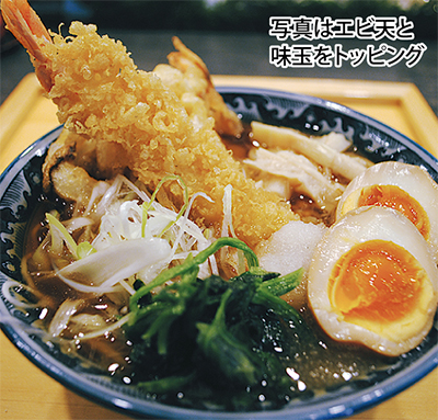天ぷらラーメンは一杯780円で提供する。トッピングは、エビ天(200円)、アジ天(150円)、野菜天(100円)、味玉(100円)、ご飯(150円)を用意。スープに漬したかき揚げをご飯に乗せれば、天丼感覚で楽しめそうだ。