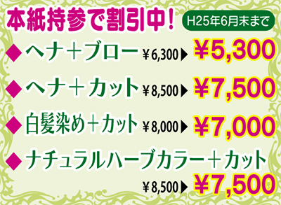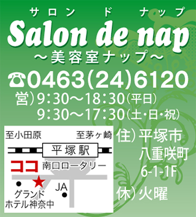 JR平塚駅南口徒歩1分にある「美容室ナップ」では、「ヘナ」の良さをひとりでも多くの人に体験してもらおうと、本紙読者限定で”1000円オフキャンペーン”を実施する。