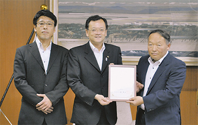 後藤組合長は20日、事業計画認定の報告に落合克宏市長を訪問した。常盤社長も同席した。