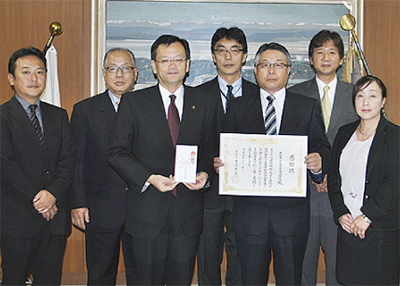 平塚市ガス事業協同組合(長尾治道理事長)が7日、市役所で市社会福祉基金に10万円の寄付を行った。同組合は平成10年から社会福祉基金への寄付を継続しており、長尾理事長は「市の社会福祉向上の一助になれば」と話していた。贈呈式ではこれまでの取り組みに対して、落合市長から感謝状が贈られた。
