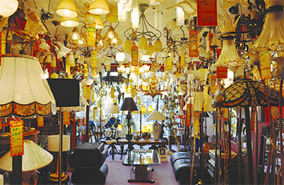 琥珀色の光に誘われて店内を覗いてみると、そこにはヨーロッパの王宮を連想させるゴージャスなシャンデリアや、さりげない陰影がロマンチックな間接照明、アンティークランタンなどがズラリと並ぶ。