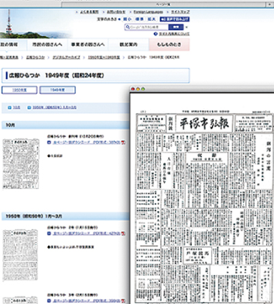 市の広報は、「平塚市弘報」というタイトルで1949年10月20日に創刊。94年には500号までの縮刷版(5冊)を発行したほか、隔年で2年分の広報をまとめた合本版を公共施設に設置するなど保存にあたってきた。デジタル化により、資料の散逸や経年劣化を防ぐことも可能になった。