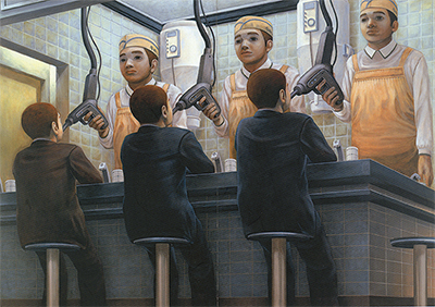 独特の画風で現代社会を鋭く風刺し、31歳で急逝した石田徹也(1973〜2005)の作品展が、4月12日から市美術館で始まる。108点の代表作を中心に、下絵やアイデアを記したノートなどが初公開される。