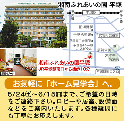 要介護から自立している人まで自由なシニアライフが可能な湘南ふれあいの園平塚=平塚市袖ヶ浜1の12=でホームの見学会が開催される。期間は5月24日(土)から6月15日(日)※要予約。