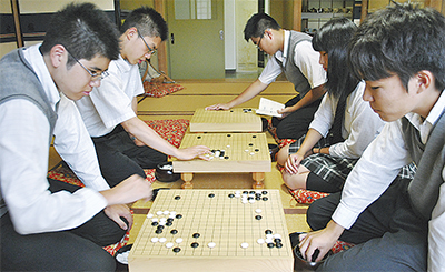 同校の囲碁部には15人が所属。「特別な練習はしていません」(前田さん)というが、実際の対局を振り返ることでウィークポイントを探るなど、部員一人ひとりの実戦力を養っているという。