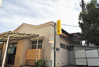 イチョウ並木通りから路地に入ると、空に伸びた赤茶色の煙突からかすかに煙が立ち上る。立野町で営業を続ける「よねの湯」だ。