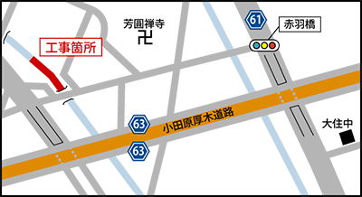 岡崎地区を流れる西海地(さいかいち)雨水幹線について、小田原厚木道路から王御住運動公園まで約600mの区間の拡幅改修を行う。工事は5年をかけ段階を踏んで進められる計画で、今年度は下流105m区間に関し、11月に着工後、来年2月27日の工事終了を予定している。同雨水幹線の拡張事業の全体予算は6億円を想定し、今回の工事では1億4564万8800円の費用を見込んでいる。