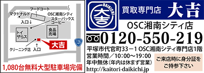 平塚オリンピックシティにある買取専門店大吉では切手と貴金属の高価買取を強化中。全国177店舗を展開する同社ならではの高額査定に加え、10円切手1枚からでも快く買取してくれるとあって、主婦や中高年者を中心にリピーターを増やしている。不要な金やプラチナのアクセサリー、金杯・銀杯、金無垢のメガネフレーム・万年筆・ネクタイピンなどは賢く現金化して臨時収入に。「古い物や破損した物、片方だけのピアスも大歓迎です」と店長。
