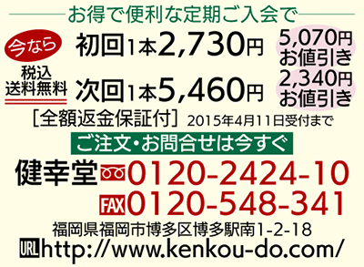 毎月1本宅配の定期入会なら、今なら月2340円お値引き。さらに、初回お届けは5070円お値引き。1日あたりたった91円ではじめられるので、冷えや倦怠感、便秘、肌荒れに悩む人も、ぜひ試してみては。