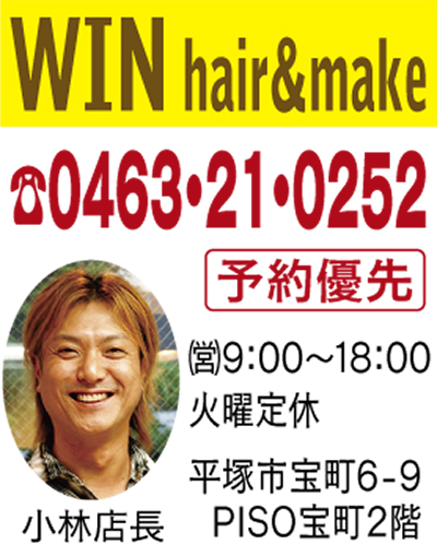 くり返しのカラーやパーマで傷んだ髪のケアなら、北口の「WIN hair & make」にお任せ。髪や頭皮への優しさにこだわる同店は、漢方・ハーブ使用の香草カラーと化粧品登録された低刺激パーマ液でハリ・ツヤをよみがえらせるという。この機会にベテランスタイリストに相談を。