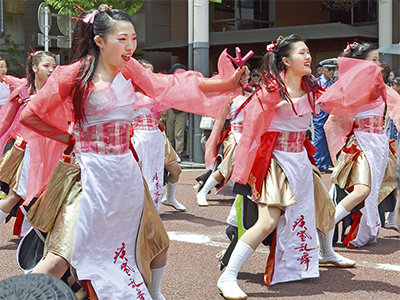 市内外からよさこいチームが集まり、見附台広場と湘南スターモール商店街で演舞を披露する「第12回湘南よさこい祭り2015」が7日に開催され、45チームが集結した。