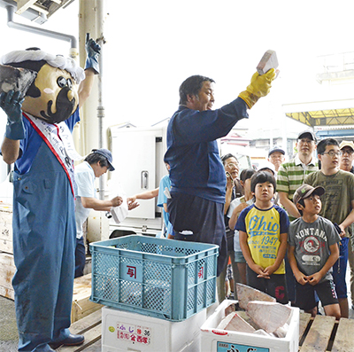 千石河岸にある平塚市水産物地方卸売市場で14日、湘南ひらつか魚まつり朝市が開催され、市内外から約約2000人が訪れた。