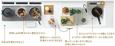 よくばりキッチンの夢をお得に叶えるチャンス。使用年数などに関わりなく一律3万5千円で下取りするキャンペーンも(先着2組・条件あり)。女性スタッフがじっくり相談に乗ってくれるので安心。