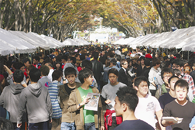 坂井会長「1年に一度の日本でも有数の大規模な学園祭です。コツコツ努力を積み重ねてきた学生の日々の研究や練習の成果、パワーが感じられる場ですね」