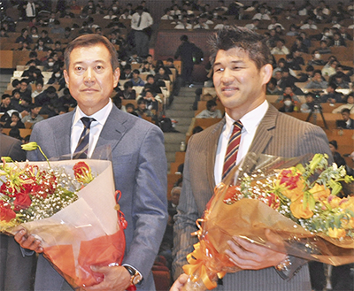 東海大学は、同大卒業生で、昨シーズンをもって巨人軍監督を退任した原辰徳元監督の功績をたたえ、「東海大学特別功労賞」を新設した。18日に原元監督に対する同賞の表彰式と合わせ、シドニー五輪柔道金メダリストで同大武道学科の井上康生准教授との記念対談を実施し、同大学生や近隣住民など1500人を超える来場者が詰めかけた。