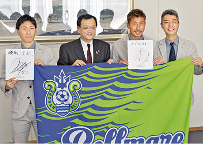 開幕戦が迫る19日には、キャプテンの高山薫選手と平塚市出身で今季加入した下田北斗選手が落合克宏市長を訪問。例年以上に濃い内容で良い準備ができたと口を揃えて沖縄キャンプを振り返り、高山選手は「昨シーズンの7得点を超える2桁得点」、下田選手は「地元の皆に喜んでもらえるプレーをしたい」と、今シーズンの活躍を誓っていた。