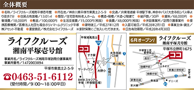 ライフクルーズ湘南平塚壱号館は国道129号線、大野小学校近く。平塚駅下車、神奈中バス「大念寺前」バス停より徒歩7分。柴田施設長は「壱号館、そして6月にスタートする弐号館ともに、地域に必要とされる場所として役目を果たしていきたい」と話した。