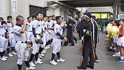 桐蔭戦を終えた服部主将は「手も足も出ず、悔しかった」と唇をかんだ。「2回戦で格上の武相に競り勝ったのは嬉しかった。後輩たちには勝つことを目標に、自分たちを超えるようになって欲しい」と目を赤くしながらエールを送った。