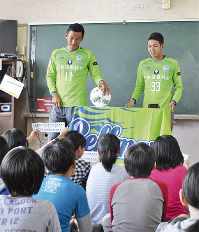 湘南ベルマーレの選手が小学校で出張授業を行う「ベルせん」が14日、市内6校で実施され、30選手が教壇に立った。