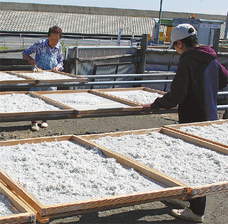 秋シラスは細かく色が白いのが特徴。市内シラス漁船は水揚げ後、釜揚げなど自家加工をしながら直販している。問い合わせは丸八丸【電話】0463・22・7260、佳栄丸【電話】0463・22・6551。
