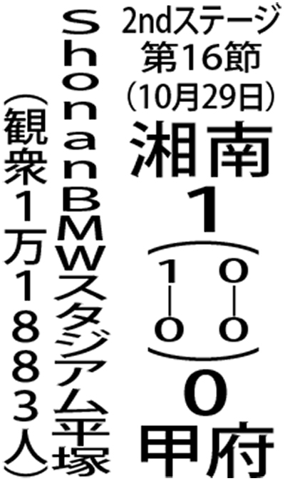 試合が動いたのは69分。ペナルティーエリア近くで三竿がファールを受けて、フリーキックを獲得。ゴール正面から三竿が蹴ったボールがゴール右上隅に吸い込まれ、湘南が先制する。