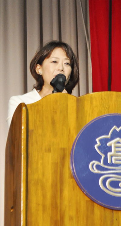 平塚江南高校で先月28日、同校を卒業したフジテレビのアナウンサー川野良子さんを講師に招いた文化講演会が開かれた。川野さんは「今はテレビやインターネットで一人の(メディアに接する)時間を奪い合っています。情報の出所が信頼に値するか判断し、どうでもいい情報に振り回されないようにしようという姿勢を持って欲しい」など後輩にアドバイスを送った。
