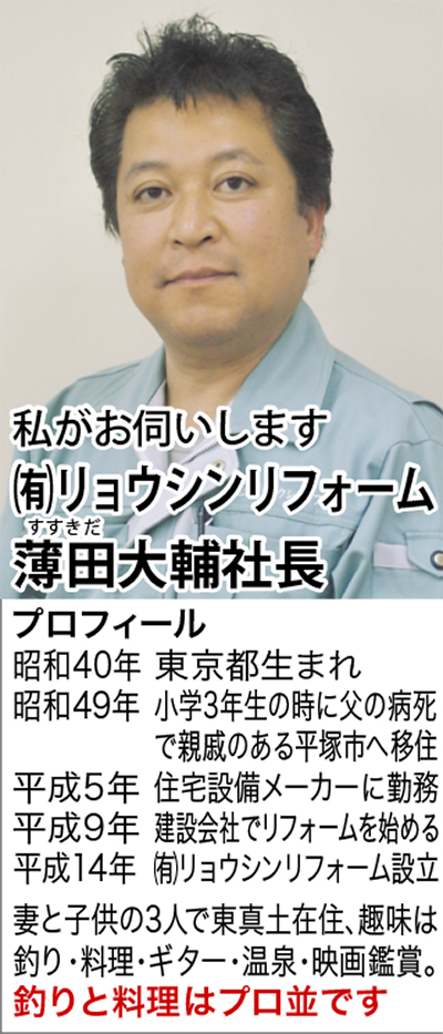 工事に日数を要するため、夏場を過ぎたこの時期にお勧めしたい浴室改修について、(有)リョウシンリフォーム(四之宮)の薄田(すすきだ)大輔社長に話を聞いた。