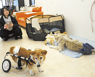老齢により身体の自由を失った犬の世話を代行したり、運動機能の回復を目指してリハビリを行う老犬ホーム「オレンジライフ湘南」(堀内理恵代表)で21日、市民らを対象にした犬用車いすの講習会が開かれた。