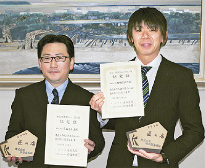 平塚市と平塚商工会議所は、卓越した技術を持った店を認定する「ひらつか匠の店」について、相模屋海苔店(札場町)と長谷金本店(千石河岸)の2社を選出、6日に市役所で2016年度認定式を開いた。