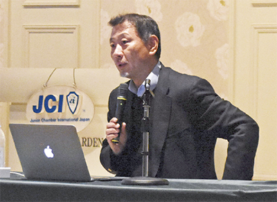 「ミッション経営〜スターバックスとザ・ボディショップで学んだこと〜」と題し、岩田氏は自身の経験則や経営者、リーダーとしての心構えを説いた。参加したJCメンバーや一般来場者らは、岩田氏のアドバイスに耳を傾けていた。