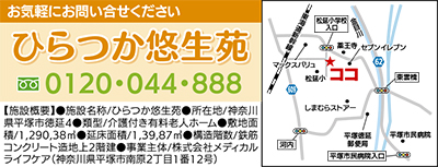 市内徳延に今年5月、介護付有料老人ホーム「ひらつか悠生苑」がオープンする。関東圏10カ所に介護事業を手掛ける(株)メディカルライフケアが運営し、同社が注力する「サービスの質」を十分に体感できる施設を展開するという。