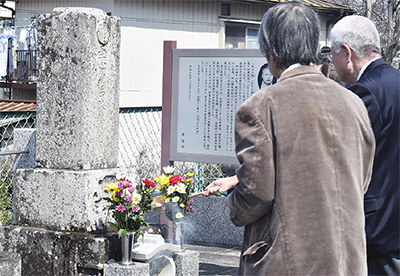 盲人教育の先駆者で、現在の神奈川県立平塚盲学校の創始者である秋山博(1863―1918)の功績を紹介しようと、秋山博墓前祭(池田弘実行委員長)が20日、南金目の寂静寺で開催された。墓前祭には主催した金目エコミュージアムのメンバーに加え、落合克宏市長や地域住民らが参加し、いち早く社会福祉の精神を体現した先人を偲んだ。
