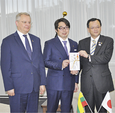 関連図書の贈呈を企画した同センターは日本とリトアニアの友好、連携、ビジネス等の発展と情報共有を目的に12年に設立された。駐日大使の活動サポートや両国の大学間の研究交流の促進、リトアニア企業の展示会ブース出展など多方面で活動している。東京五輪・パラリンピック競技大会の事前キャンプ地の選定では、同国オリンピック委員会や各種競技団体との調整役として尽力した。