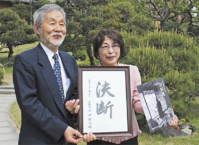 4月から一般公開を始めた大磯町の旧吉田茂邸の入館者数が20日、1万人を超えた。1万人目となったのは、友人2人と見学に訪れた平塚市在住の邑石(むらいし)洋子さん。「吉田茂がここで数々の決断をしたことからこの言葉を選んだ」という中崎久雄町長が自ら「決断」と毛筆した額入りの書や、吉田茂と大磯に関する企画展の図録などが記念品として贈られた。