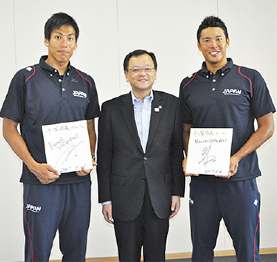 2人の訪問を受け落合市長は「一流のプレーでビーチバレーと平塚の魅力を発信してほしい」と激励した。