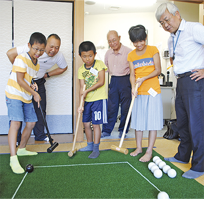 花水小6年の大仁田美花子さん(11)は「やったことのないゲームだけど、おじいちゃんたちが教えてくれてすぐ理解できました」とにっこり。参加者の中で最高齢の佐藤ウメ子さん(93)も「やはり子供と一緒だとにぎやかで楽しいね」と笑顔で振り返っていた。