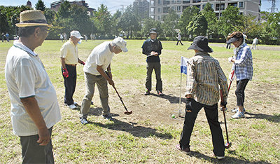 9月13日、馬入ふれあい公園では、シニアの健康増進を目的に活動する「松原老人クラブ連合会」のおよそ20人がグラウンドゴルフを楽しんでいた。同会は昨年9月、交付団体に認定され、今年度も補助金を活用しながら活動している。