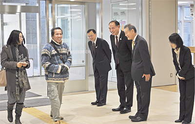 式典後には落合市長らが来庁者を笑顔で出迎えた。土屋在住の吉川洋司さん(66)は「市役所には車で来るので平塚警察署の横にあった駐車場が庁舎に隣接したのはありがたいですね」と喜んでいた。