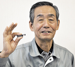 上原代表が手に持つ長さ50㎜の金属部品(=写真)は、先端部分に約2㎜の人工ダイヤモンドを取り付けた特注品。高硬度のダイヤモンドは微細な削り出しが難しく、高い技術力が求められる。しかし同社は設計図との差異をプラスマイナス1000分の2㎜以下で製作するなど、受注元の厳しい要求に、きめ細やかに応え続けている。