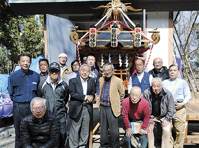 市内万田の愛宕神社にある神輿の芯柱に「文政元年(=1818年)」と記されていることを、神輿保存会の愛神会(吉川尚良会長)が発見した。神輿が今からちょうど200年前に造られた証拠になるのではないかと、4日に元平塚市博物館長の土井浩氏を境内に招き、文字を鑑定してもらった。