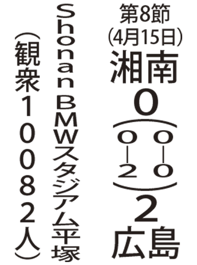 前節アウェーで北海道コンサドーレ札幌に惜敗した湘南ベルマーレは15日、開幕から7戦無敗のサンフレッチェ広島とホームで対戦した。チャンスを演出したが最後の精度を欠き、広島パトリックのヘッド2発に沈んだ。