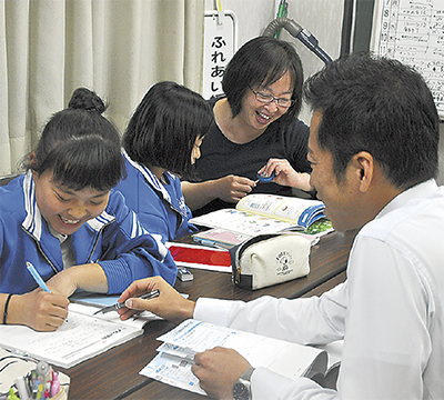 初日に訪れたのは金目中に通う武田優叶(ゆうか)さん(14)と幸芽(こうめ)さん(12)の姉妹。数学や英語の宿題を講師と談笑しながら進めた。優叶さんは「授業の復習になるし、勉強以外のことも地域の大人の人に教えてもらえて楽しい。ここで学んだことを周りの友達に伝えたい」と笑顔で話していた。
