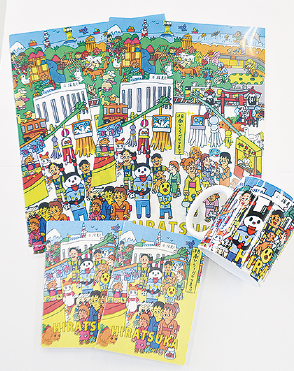 ひらつか市民プラザ(紅谷町18の8)では、市観光協会が平塚八幡宮で祈祷済みの「星への願い笹飾り」(税別700円)や、七夕飾りが描かれたアロハシャツ(税別3900円)を販売。今年の七夕まつりポスターをデザインした横溝さやかさんのイラストを使ったクリアファイル(税込200円)やマグカップ(税込1500円)、ミシン目入りノート(税込400円)などの七夕公式グッズも並ぶ。