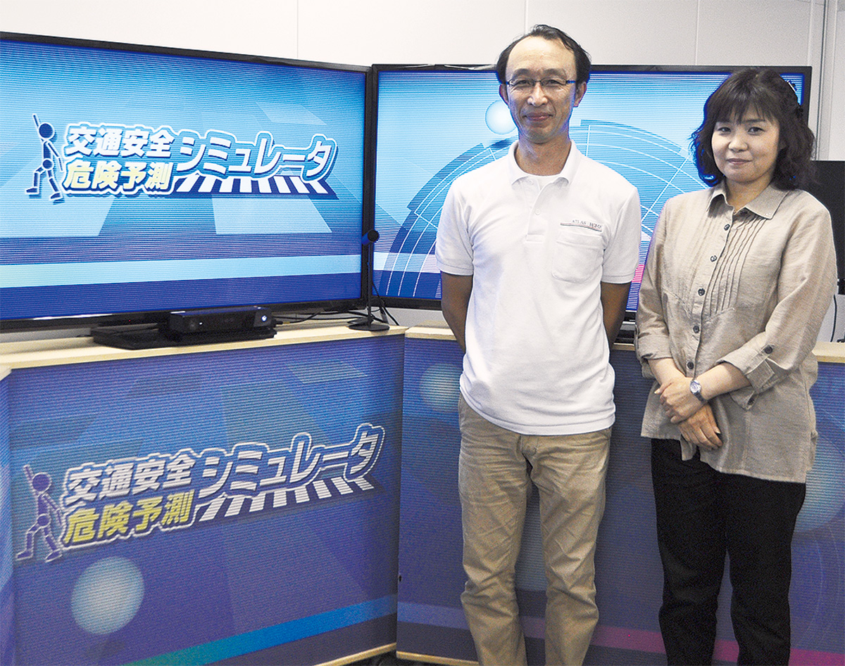 また交通事故のリプレイ機能を搭載し、歩行者とドライバー双方の立場から事故原因の理解を深めるようにした。モニター3台とパソコンを備えた横3・15m、縦1・7mの仕様で、約2年かけて商品化へとこぎつけた。