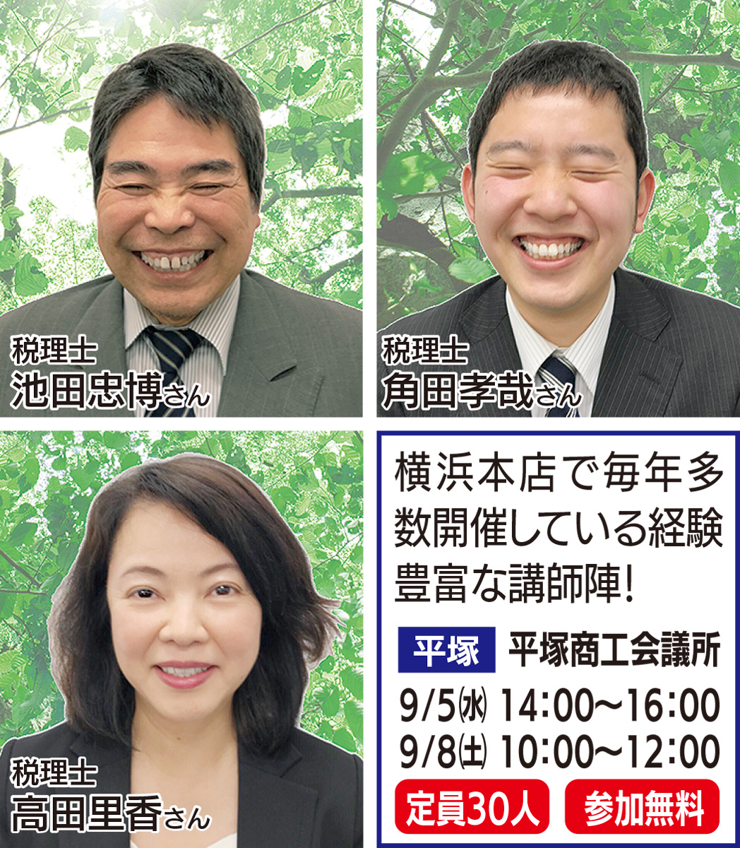平塚市八重咲町にある「税理士法人あおば湘南支店」による地域貢献セミナー「大丈夫?我が家の相続」が9月5日(水)と8日(土)に、平塚商工会議所で開催される。各回定員30人で参加は無料。